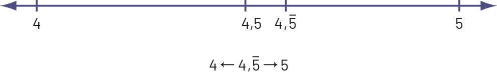 droite numérique est graduée de quatre à cinq avec intervalle de zéro virgule cinq. À côté de quatre virgule cinq, il