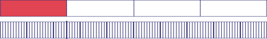 Ils peuvent ensuite subdiviser les dixièmes en dix parties égales, créant ainsi cent parties égales, soit des centièmes du tout et reconnaître que \(\frac{{25}}{{100}}\) est une fraction équivalente à \(\frac{1}{4}\).
