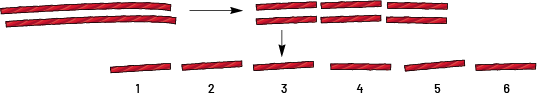 deuxième ensemble, qui comporte six réglisses placées deux par deux. Le premier paquet de deux pointe avec une flèche