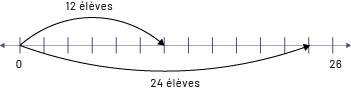 Image Une droite numérique est graduée de zéro à 26 par marques d’intervalles de deux. Au-dessus, une flèche relie zéro à douze en indiquant « douze élèves », et en dessous, une flèche relie zéro à 24 en indiquant « 24 élèves ».