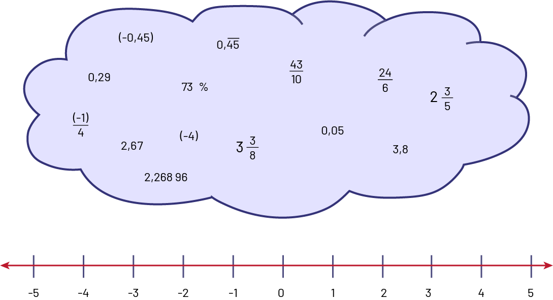 Au-dessus d’une double droite numérique graduée de moins cinq à cinq, il y a un nuage contenant plusieurs types de