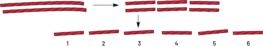 réglisses placées deux par deux. Le premier paquet de deux pointe avec une flèche vers la troisième réglisse du