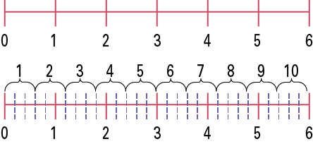 Image Deux droites numériques graduées de zéro à six sont placées l’une sous l’autre. La première ne présente que