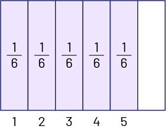 parties sont bleues et portent la fraction un sixième. Il est écrit respectivement un, deux, trois, quatre et cinq