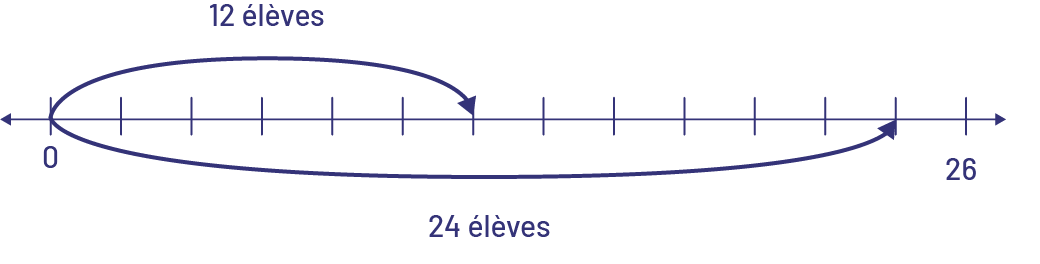 douze en indiquant « douze élèves », et en dessous, une flèche relie zéro à 24 en indiquant « 24 élèves ».