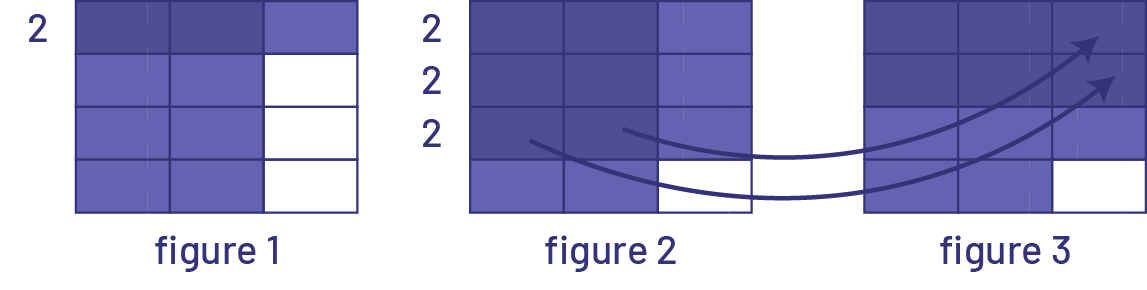figure trois. La figure trois a des rectangles bleus partout sauf le dernier en bas à droite. Il est écrit « deux » à