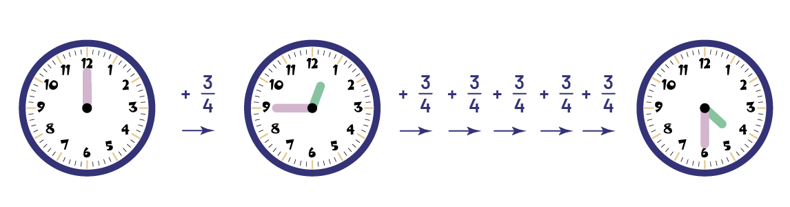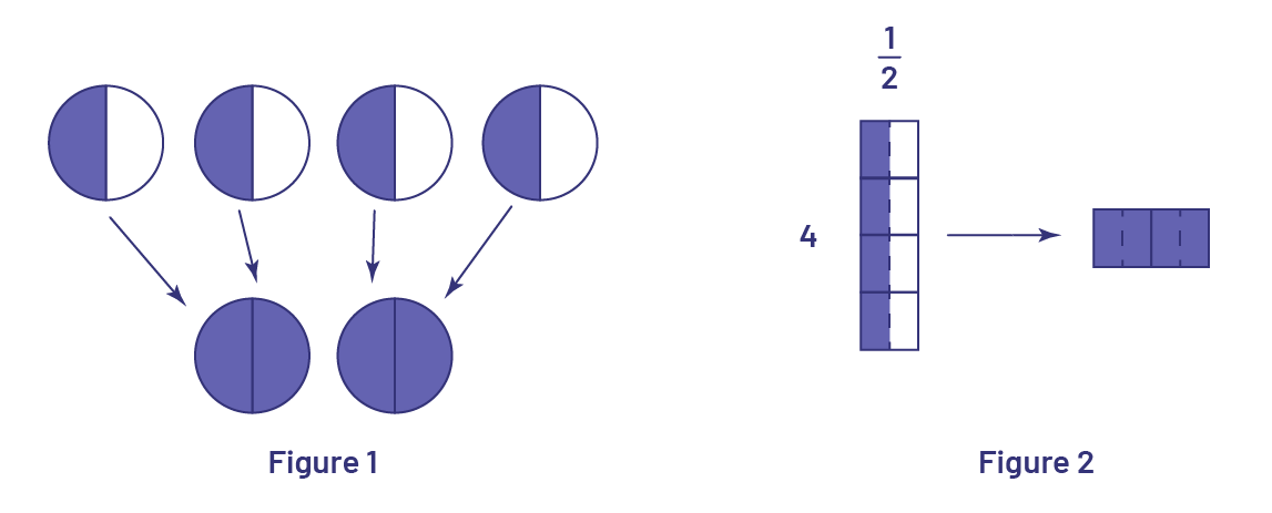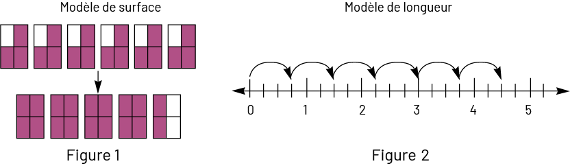 Cependant, il est plus difficile de donner un sens à la multiplication d’un nombre naturel par une fraction (par exemple, \(\frac{1}{2}\; \times \;3\)). Ces situations sont explorées à partir de la 5e année en multipliant un nombre naturel par une fraction unitaire.