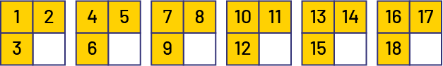 Afin de créer un dallage, chaque équipe a besoin de l’équivalent des \(\frac{3}{5}\;\)des carrés d’une feuille. Combien d’équipes peuvent effectuer la tâche si on dispose de 6 feuilles?