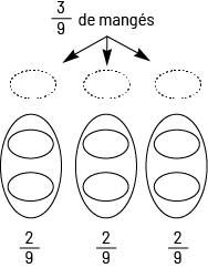L’élève qui résout des problèmes utilise du matériel de manipulation et des illustrations pour représenter les fractions et pour simuler l’action qui se dégage de l’énoncé. C’est en partant de ces représentations visuelles qu’elle ou il construit le sens des opérations (×, ÷).