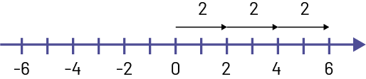 Représentation symbolique : \(3\; \times (- 2)\; = \;(- 6)\;{\rm{ou}}\; (- 2)\; + \; (- 2)\; + (- 2)\; = \; (- 6)\)