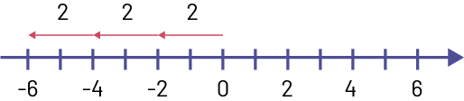 Une droite numérique est graduée de moins six à six. Au-dessus de la droite, une flèche relie zéro à moins deux en