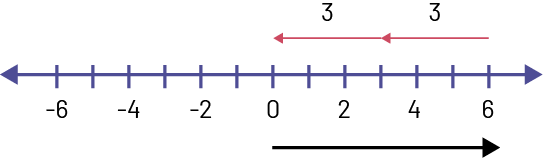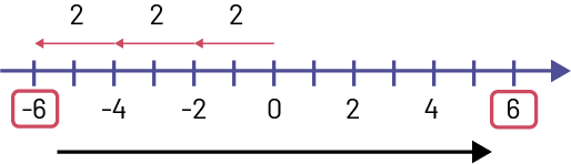 Une double droite numérique est graduée de moins six à six. Au-dessus de la droite, une flèche relie zéro à moins