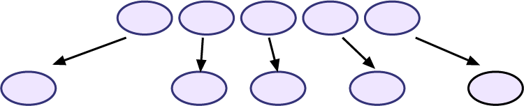 image L’image présente deux rangées de quatre ovales couleur lilas. Dans la rangée du haut, les ovales sont plus rapprochés que dans la deuxième rangée. Chaque ovale du dessus est relié par une flèche à celui correspondant à son rang en dessous.