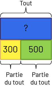 Image Un tout est représenté par un bloc bleu d’une valeur de 800. En dessous, un bloc jaune d’une