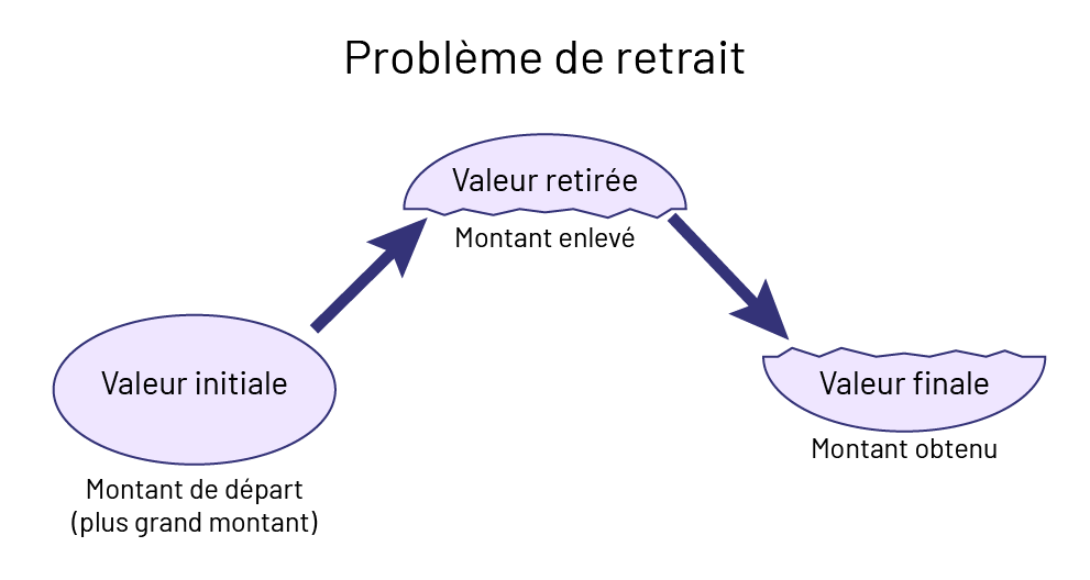 vers, valeur retirée, montant enlever. Une flèche pointe vers valeur finale, le montant obtenu.