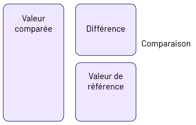 Image Un grand rectangle où l’on peut lire : valeur comparée. 2 rectangles plus petits, placés