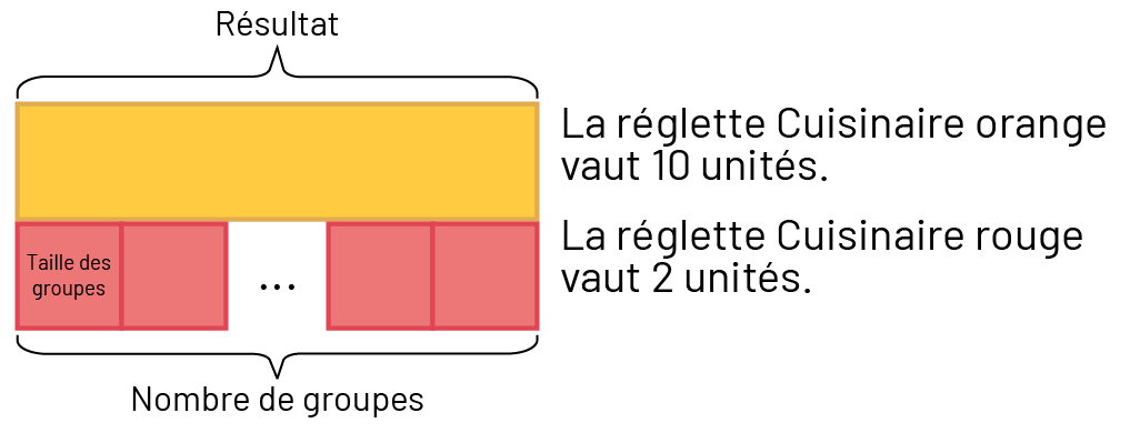 extrémités de la réglette orange, il y a un espace vide entre les groupes de deux. Sur la première réglette rouge, on