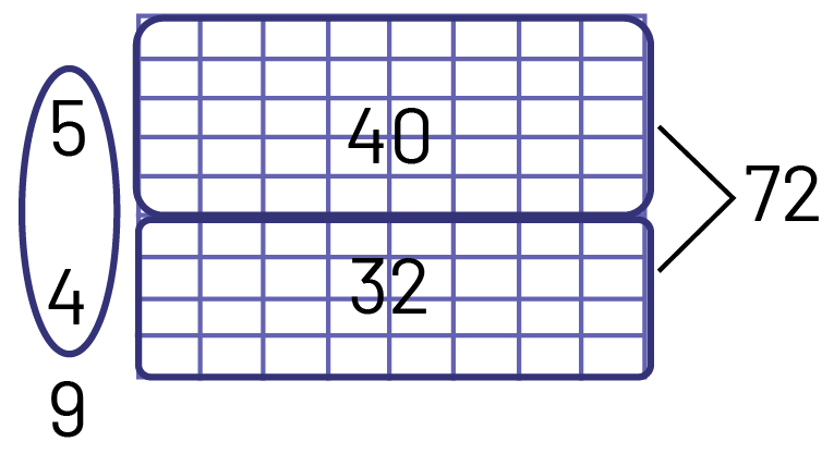 J’additionne le nombre de rangées, soit \(5 + 4 = 9 \). Il y a donc 9 groupes de 8 enfants.