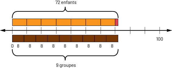 représente 9 groupes. Il y a donc 9 groupes de 8 enfants.