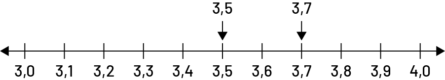 image Une droite numérique graduée de 3 virgule zéro à 4 virgule zéro, par intervalles d'un dixième. Une flèche partant du nombre 3 virgule 5 et pointant vers le tiret représentant 3 virgule 5. Une autre flèche partant de 3 virgule 7 et pointant vers le tiret représentant 3 virgule 7.