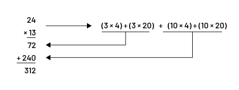 L’opération mathématique 24 fois 13 égal 312 est inscrite de façon verticale. Une flèche partant de cette direction et