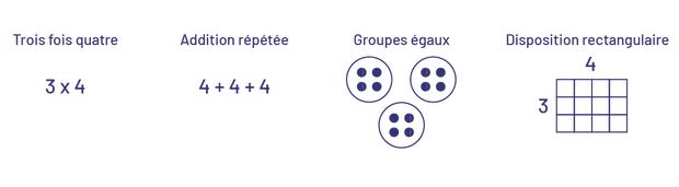 Le lien entre la multiplication et l’addition est souvent le point de départ pour présenter le concept de multiplication.