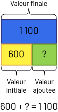 image Point d’interrogation plus 500 égal 1100.Un rectangle bleu identifié avec le nombre 1100