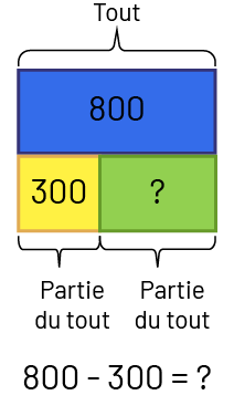 image 800 moins 300 égal point d’interrogation. Un rectangle bleu identifié avec le nombre 800