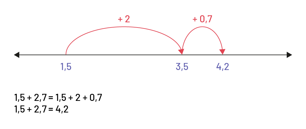 - Alors \(1,5\; + \;2,7\; = \;4,2\).