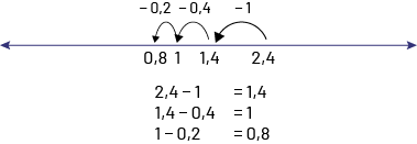 \(\begin{align}2,&4\; - \;1,6\\2,&4\; - \;\left( {1,4\; + \;0,2} \right)\\2,&4\; - \;1,4 = \;1\\ &1\; - \;0,2 = \;0,8\end{align}\)