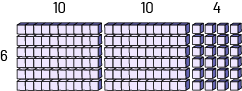 image Deux planchettes de 6 languettes horizontales chacune. Le nombre dix est inscrit au-dessus de chaque planchette.Le nombre 6 est inscrit à gauche des planchettes. Chaque languette équivaut à dix unités.Un ensemble de 24 unités disposé en 4 colonnes de 6 unités chacune.Le chiffre 4 est indiqué au-dessus de cet ensemble.