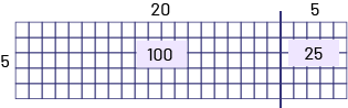 \(\begin{align}100 \div 5 &= 20\\25 \div 5 &= 5\\20 + 5 &= 25\end{align}\)