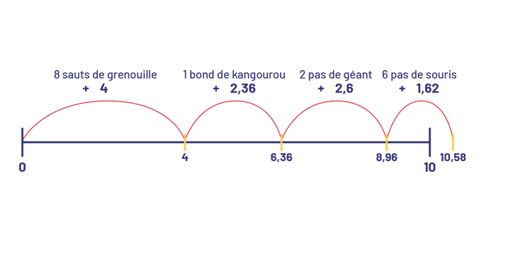 kangourou de plus 2 virgule 36, part de 4 et va à 6 virgule 36.Un bond de 2 pas de géants, plus 2 virgule 6, part de 6