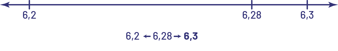 En visualisant le nombre 6,28 sur une droite, les élèves peuvent conclure que 6,28 est plus près de 6,3 que de 6,2 et donc, arrondir 6,28 à 6,3.