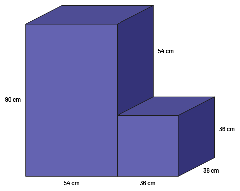 90 centimètres par 54 centimètres, et on sait que le haut du prisme qui ne touche pas au cube mesure 54 centimètres