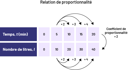Il y a une relation de proportionnalité entre 2 quantités lorsque ces quantités peuvent augmenter ou diminuer simultanément selon le même facteur. Par exemple, si une des 2 quantités est triplée, l’autre est triplée aussi. Le rapport entre les 2 quantités est alors constant (par exemple, \(\frac{1}{6}\; = \;\frac{3}{{18}}\)). Une telle égalité entre 2 rapports s’appelle une proportion.