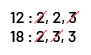 Facteurs premiers communs aux 2 nombres : 2 et 3