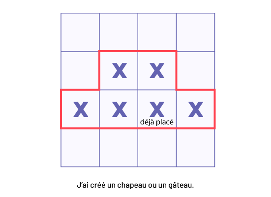 la grille est écrit « J’ai créé un chapeau ou un gâteau. »