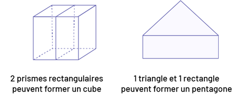 prismes rectangulaires peuvent former un cube. » La deuxième image est un : « pentagone. » Sous le pentagone est écrit