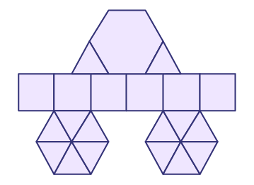 Le questionnement ouvert du personnel enseignant permet à l’élève d’approfondir sa compréhension du concept de l’aire. L’élève doit comprendre que, pour mesurer efficacement l’aire d’une figure plane, les unités de mesure doivent être placées sans espacement et sans chevauchement. Lorsque la figure plane est complètement recouverte de différentes unités de mesure non conventionnelles, une conversion est nécessaire pour arriver à une mesure de l’aire plus facile à communiquer. Par exemple, dans l’image précédente, l’élève peut remarquer que l’hexagone est formé de six triangles et que chacun des losanges contient deux triangles. L’aire pourrait donc être de 18 triangles.