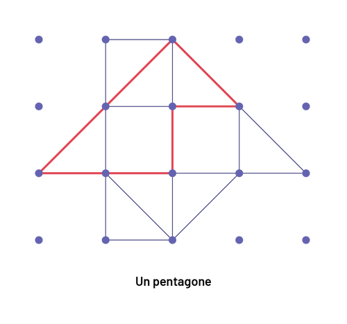 Si l’élève cherche un pentagone, elle ou il doit trouver une forme ayant cinq côtés et cinq sommets. Elle ou il ne doit pas s’attarder à la taille, ni au type d’angles, ni à la longueur des côtés.
