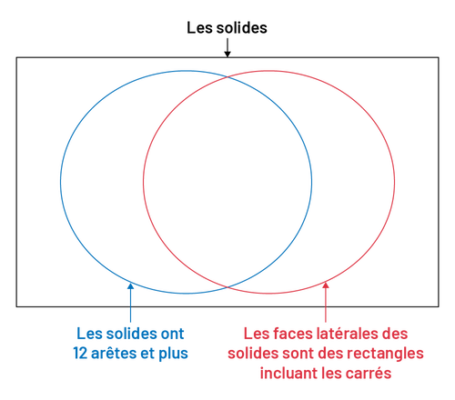 solides. Dans le rectangle il y a 2 cercles. Un cercle bleu qui représente les solides qui ont 12 arêtes et plus. Un