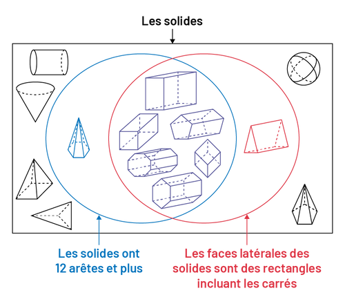 - classe chaque solide dans la région appropriée du diagramme de Venn;