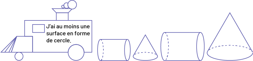 Pour réaliser l’activité, l’élève doit pouvoir reconnaître les faces, les arêtes et les sommets d’un prisme ou d’une pyramide ainsi que les surfaces d’un cône, d’un cylindre ou d’une sphère. L’activité a pour but de permettre à l’élève :