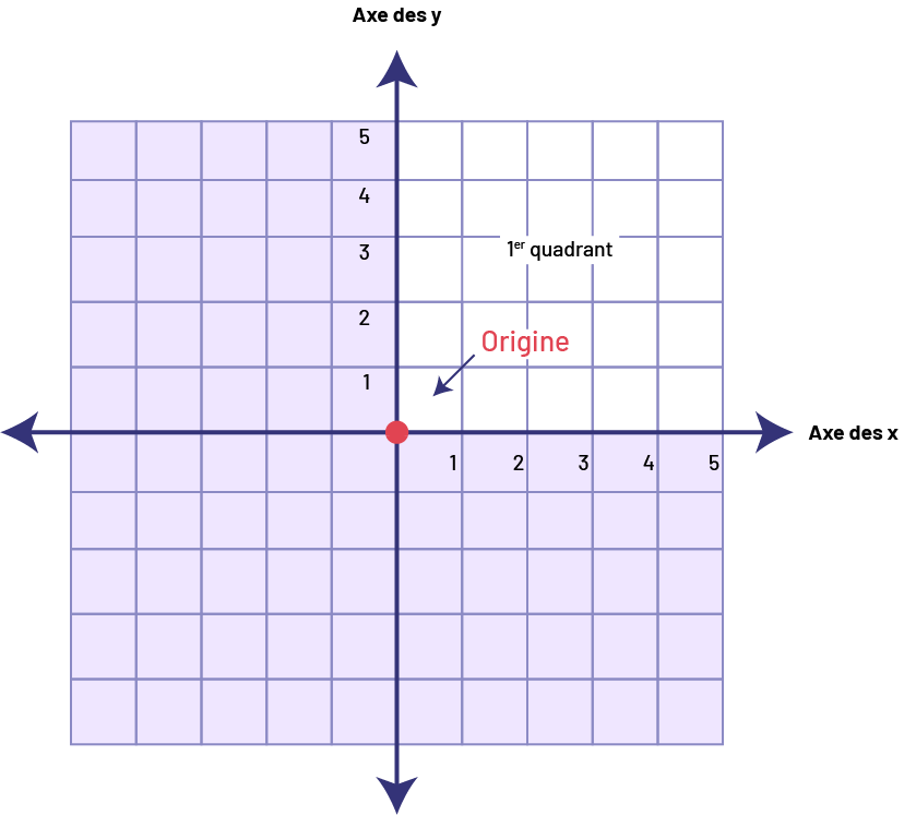 Le point de rencontre de l’axe horizontal et de l’axe vertical, qui sert de point de repère, est le point d’origine.