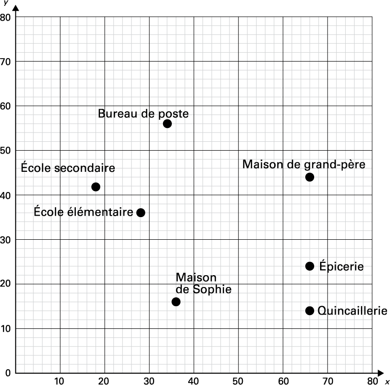 - Lis et situe les coordonnées de la maison de Sophie et de la maison de son grand-père.