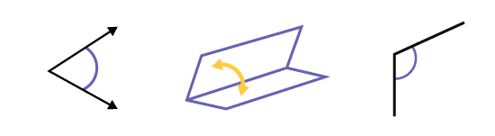 Lorsque deux segments de droite sont tracés à partir d’un point commun, ils forment en réalité deux angles différents (figure ci-dessous), soit l’angle saillant (angle dont la mesure se situe entre 0° et 180°) et l’angle rentrant (angle dont la mesure se situe entre 180° et 360°).