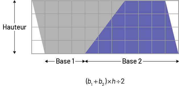 former un parallélogramme. Ce parallélogramme est divisé par sa hauteur, sa base un et sa base deux. Sous la grille
