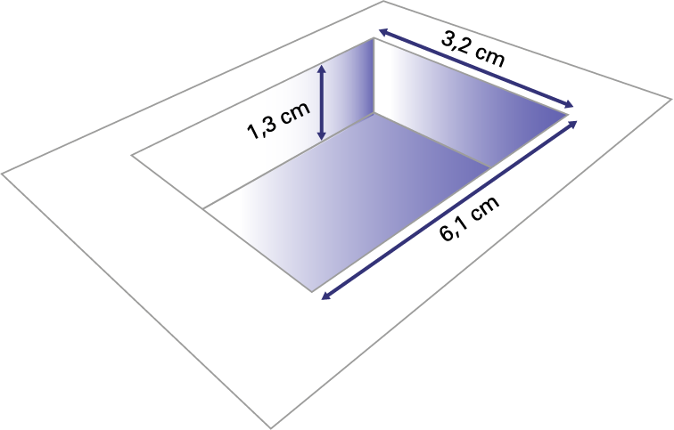 centimètres, la longueur est 6 virgule un centimètres et la profondeur est un virgule 3 centimètres.