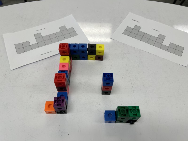 Dans cette situation d’apprentissage, les élèves utilisent des cubes emboîtables pour construire une maquette de ruines qui correspond à un ensemble de vues données.